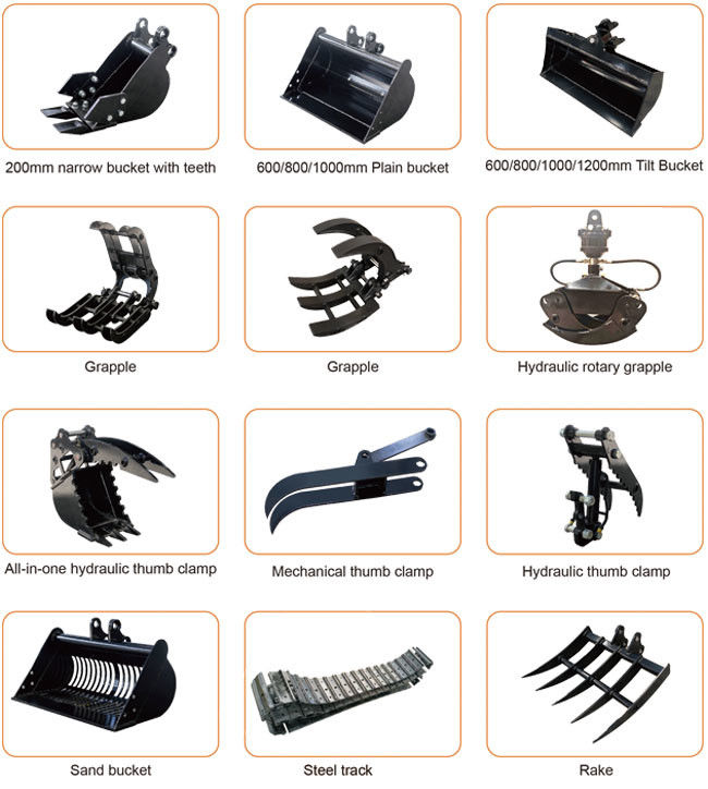 की सुविधाएंमिनी खुदाई सहायक उपकरण